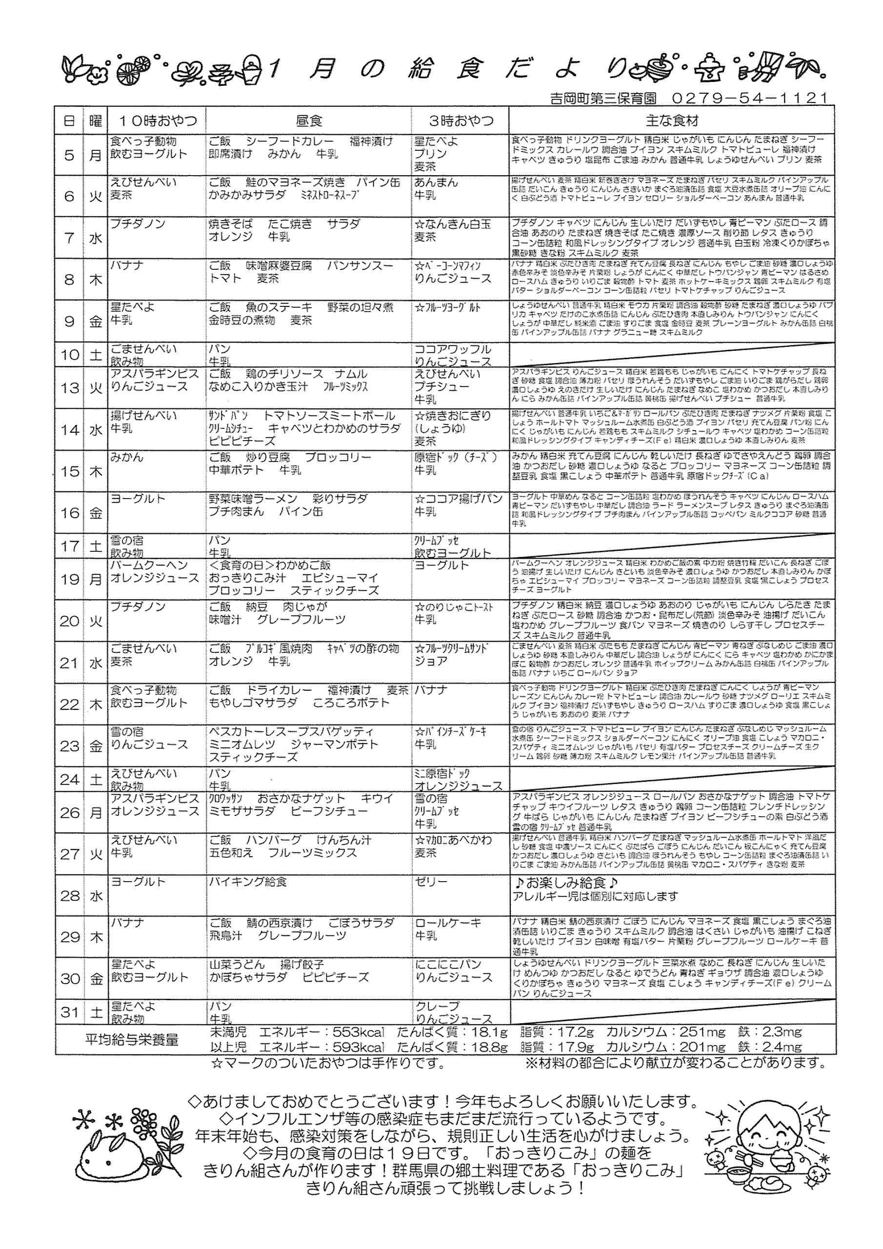 1がつの保育園だより
